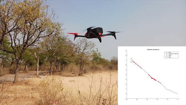 Parrot Bebop drone mounted with S.L.A.M Dunk stereo rig is used for Autonomous Navigation in orchard.